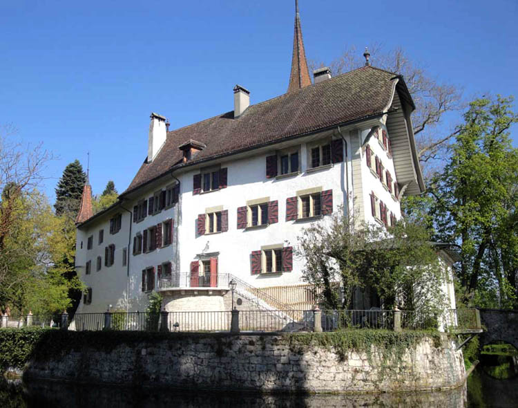 Schloss Landshut, auf einem Sandsteinfelsen in Utzenstorf errichtet, und umrahmt von einem malerischen Landschaftspark im englischen Stil, ist das einzige vollständig von Wasser umgebene Schloss im Kanton Bern. Hinter seinen Mauern befindet sich seit 50 Jahren