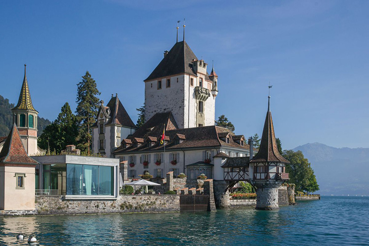 Das romantische Schloss direkt am Thunersee kann auf eine wechselvolle Besitzergeschichte zurückblicken. Seine Verwandlung von der Wasserburg zur gräflichen Sommerresidenz führte vom Hause Habsburg über die grossen Berner Geschlechter der von Scharnachthal und