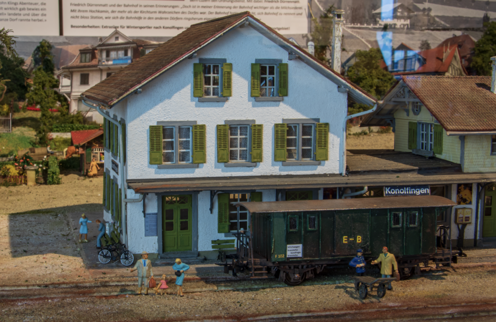 Der Blick in die Vergangenheit wird mit Filmen, Bildern, Zeitungsdokumenten und vielen Eisenbahnmodellen in unterschiedlichen Spurweiten und passenden Dioramen ermöglicht. Dazu sind wertvolle Originalgegenstände wie der Billettkasten mit Datumspresse von Schafhausen, der Billettdrucker – Pautze genannt – zu sehen. Eindrücklich erlebt man die Billettgeschichte anhand von Bildern und dem vor Ort ausgedruckten Billett. Auf dem funktionierenden, ehemaligen Gleisbild des Bahnhofs Konolfingen werden die ein- und ausfahrenden Züge wie echt gezeigt. Das Stellwerk von Obermatt, eine Bahnhofglocke und eine Bahnhofrassel sowie der Induktor der den Strom zum Betrieb liefert – da kann sogar selber Strom erzeugt werden – gehören zu den Exponaten. Mit dem Loksimulator kann sogar, wie in Echtzeit, gefahren werden. Lokführer erklären wie die Lok eingeschaltet wird und dann geht’s realistisch auf die Strecke von Bern bis Luzern.